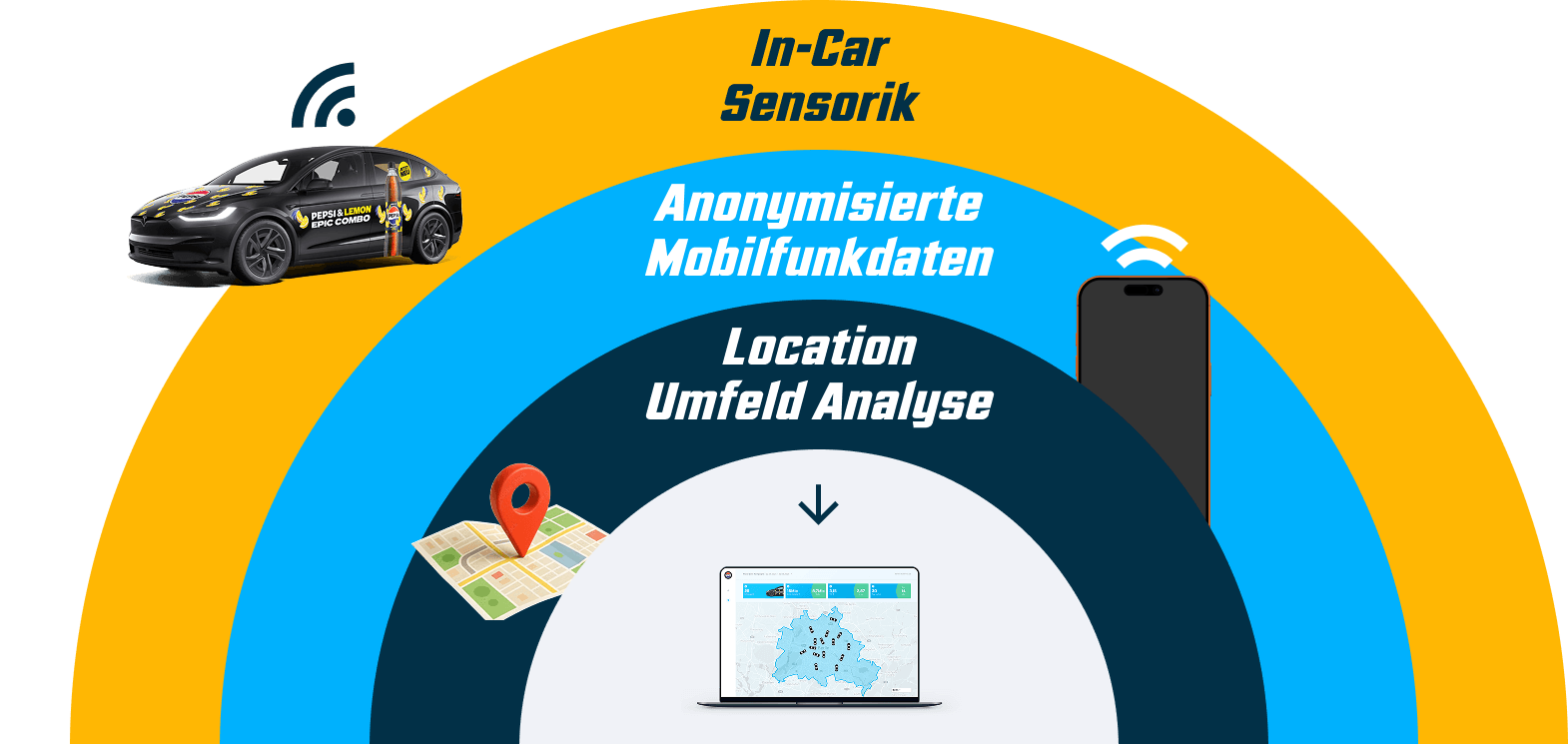 DOOH Screens im Fahrzeug – dynamisch & messbar. Ideal für Awareness, Launches & Promotions.
